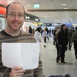 Le 19 décembre arriva enfin. À 7h du matin JS et moi prenons le train direction Munich pour rejoindre Marie-Pierre et Martin. Nous arrivons à l’aéroport une bonne heure d’avance. Avec tous ces retards de train, nous sommes juste heureux d’avoir pu nous rendre. En arrivant la bas nous voyons que leur avion aura 15 minutes de retard. Y’a rien la, encore une fois avec tous les retard et les annulations… Au moins., ils arriveront ! Je ne tiens plus en place. Une fois qu’ils sont au sol je suis sur le bord des arrivées et j’attends impatiemment J’ai beau faire, j’ai la bougeotte et je guette les annonces et les portes. JS lui, patient, attend à coté de moi avec son affiche où il a dessiné avec “brio” un poisson et de la gravelle… Ils sortiront des bagages une heure plus tard. Je suis sous le coup de l’émotion, les larmes coulent, enfin de la famille.